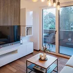 Kompletní rychlovarnou konvicí, chladničkou a kuchyňským nádobím v kompletní kuchyni, ubytování také nabízí pohovku, přístroj na přípravu kávy a čaje, místnost na posezení v pokojích. Tento apartmán má také parketovou podlahu. Všechny koupelny jsou vybaveny prostornou sprchou, samostatnou toaletou a vanou.